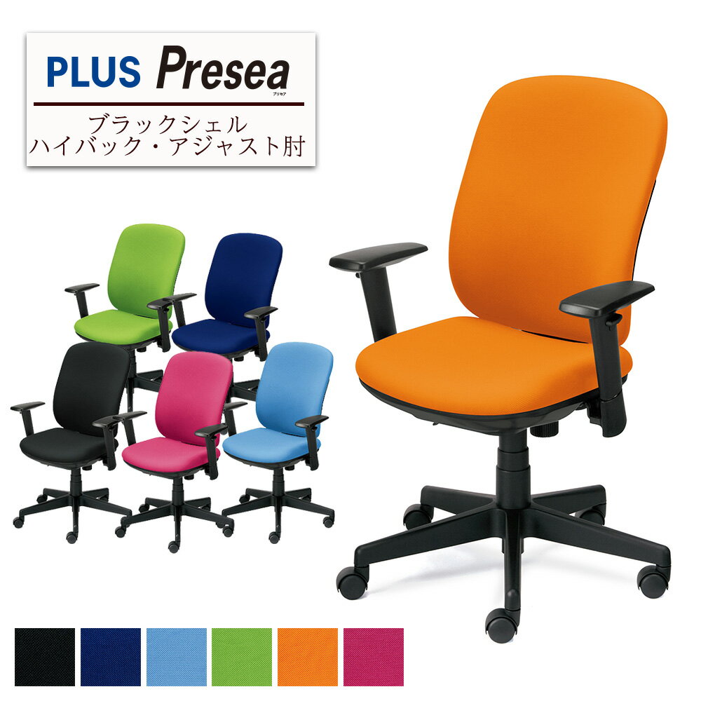 プリセア ブラックシェル ハイバック アジャスト肘 ( オフィスチェア PCチェア pcチェア 事務椅子 事務チェア 学習椅子 学習チェア 椅子 イス いす チェア オフィスチェア PLUS プラス 使いやすい 疲れにくい コンパクト テレワーク)