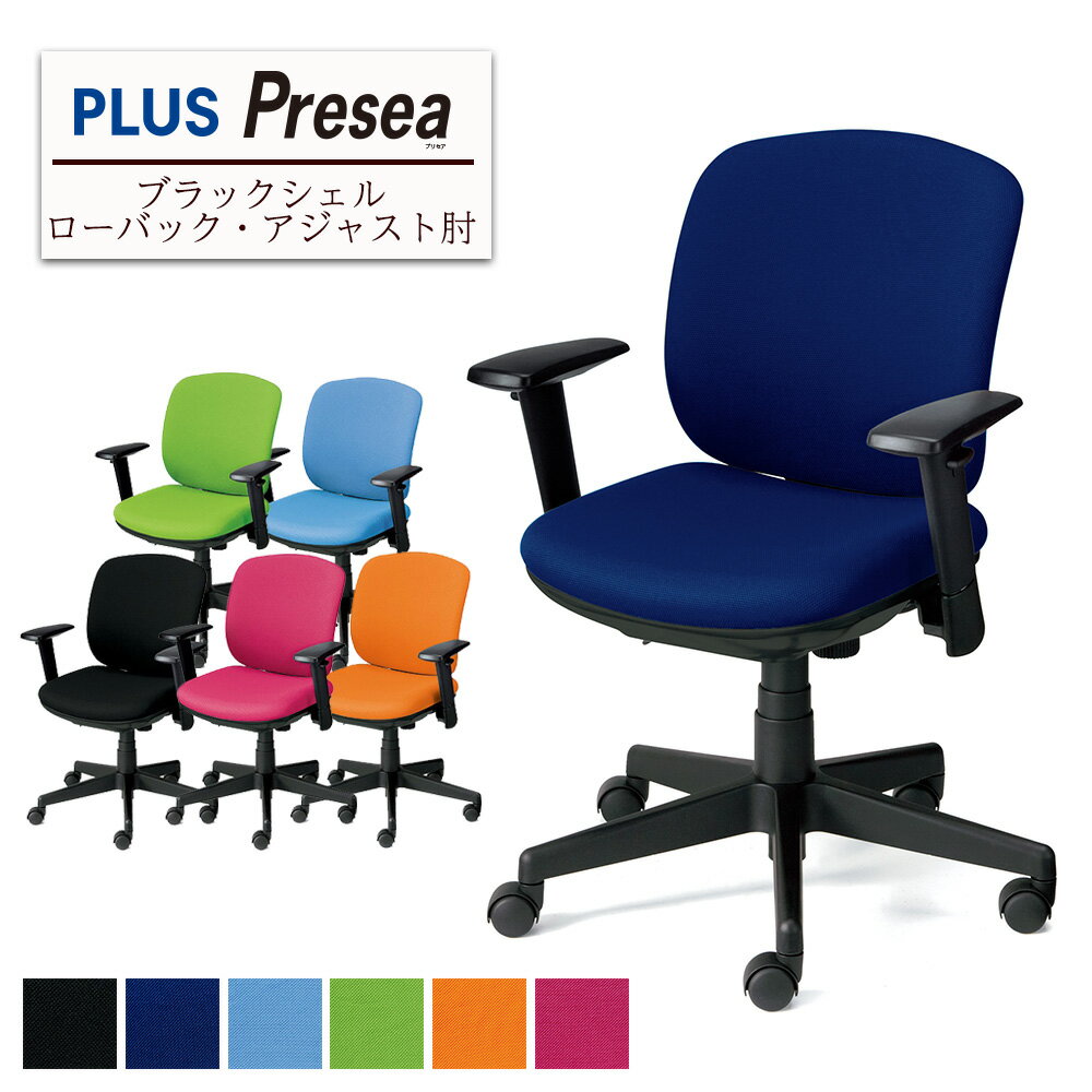 プリセア ブラックシェル ローバック アジャスト肘 ( オフィスチェア PCチェア pcチェア 事務椅子 事務チェア 学習椅子 学習チェア 椅子 イス いす チェア オフィスチェア PLUS プラス 使いやすい 疲れにくい コンパクト テレワーク)